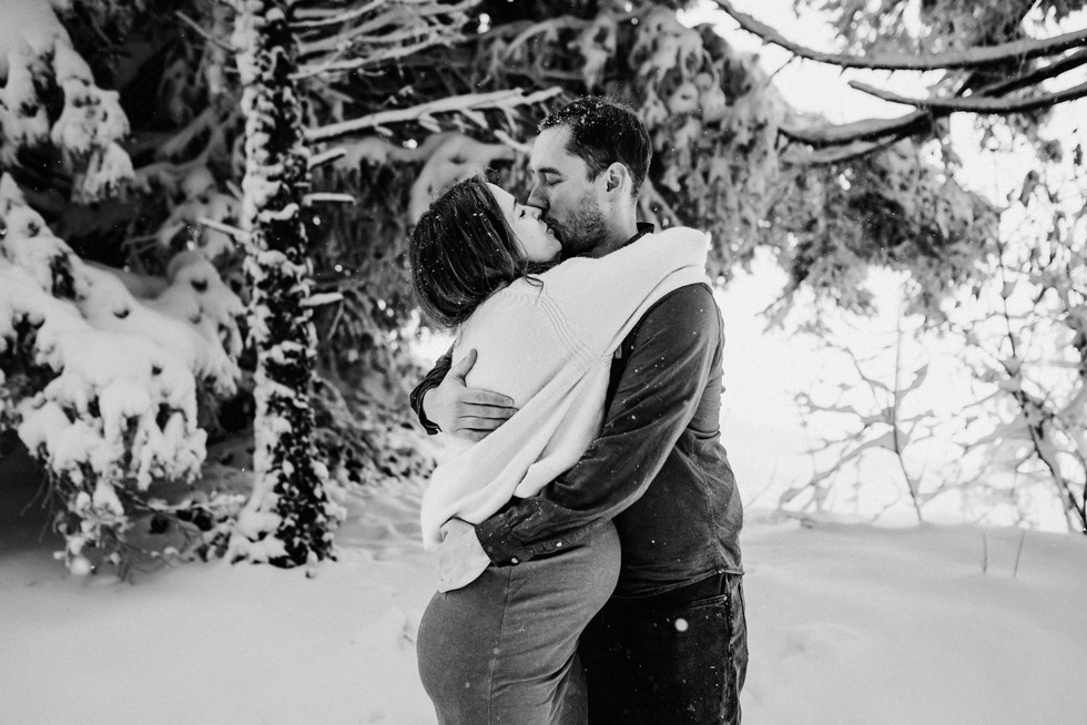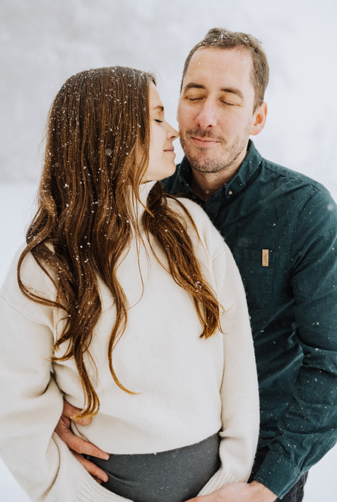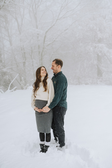 Eigentlich hatten die beiden die Location für ihr Schwangerschaftsshooting wegen der wunderschönen Aussicht ausgewählt. Davon hatten wir dann nichts - dafür umso mehr Schnee! Dass wir überhaupt bis zur Fotoshootinglocation gekommen sind, verdanken wir den fleissigen Schneeschneuzern und meinem tapferen 4x4li. Richtig tapfer war aber dieses Paar, das bei -1°C fröhlich alle Posen mitmachten, die ich ihnen vorschlug. Zwischendurch wärmten sie sich in den Winterjacken wieder auf. Ich glaube aber, dass es sich sehr gelohnt hat, für die Fotos ein bisschen zu leiden. Wow, oder?