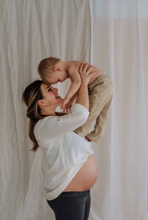 Manchmal verspüre ich Lust, etwas auszuprobieren. Warum nicht einmal mein Büro in ein Tageslichtstudio verwandeln, um ein Schwangerschaftsshooting abzuhalten? Mit langen Stoffbahnen und schönen neutralen Farbtönen. Das war meine Idee und ein Model habe ich auch dafür gefunden. Sie hat auch den grossen Bruder mitgebracht und die beiden hatten ein bisschen Zeit, zusammen zu kuscheln, während ich in dieser ungewohnten Situation mit Winkeln, Licht und Kamerasettings gespielt habe. Win-win also. Was meint ihr zum Resultat?